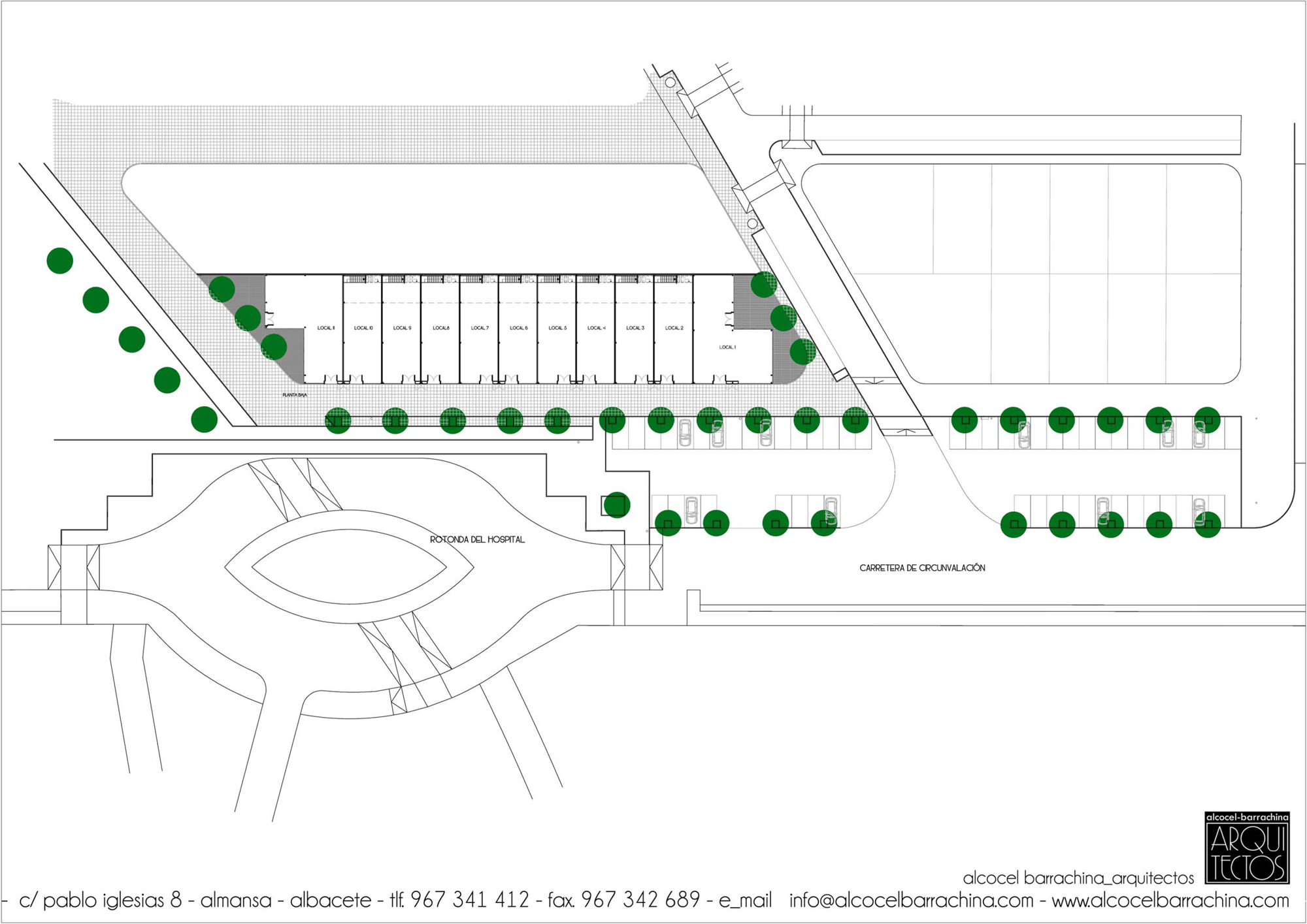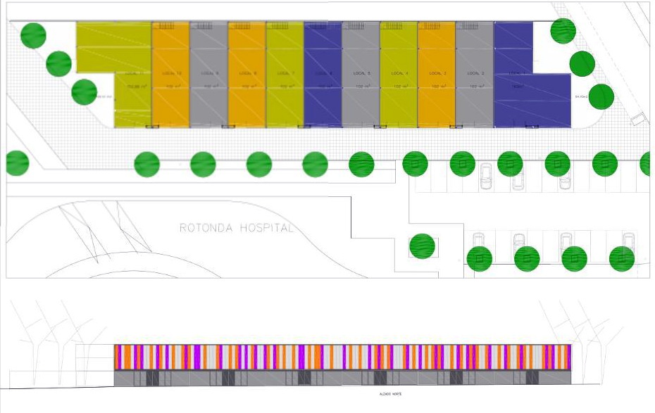 La fachada de la nueva área, que reúne en una única entidad once locales comerciales, mira hacia el hospital y la autovía pero está muy próxima al centro urbano y tiene un privilegiado acceso peatonal.Nueve de los once locales planteados tienen 100 metros de planta con un segundo piso de 25 metros, los dos de los extremos, pensados para industrias de hostelería, tienen 160 metros y con una zona exterior de 100 metros que puede ser utilizada como terraza.