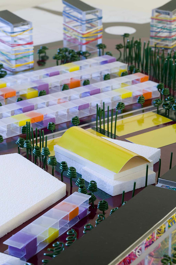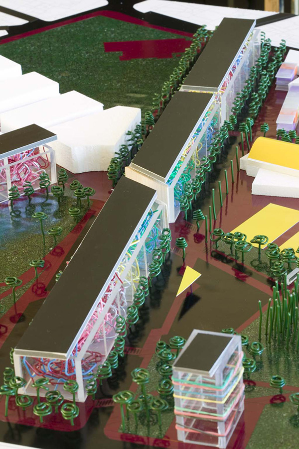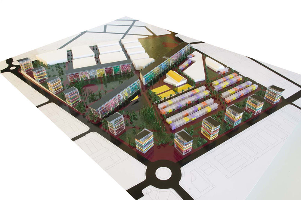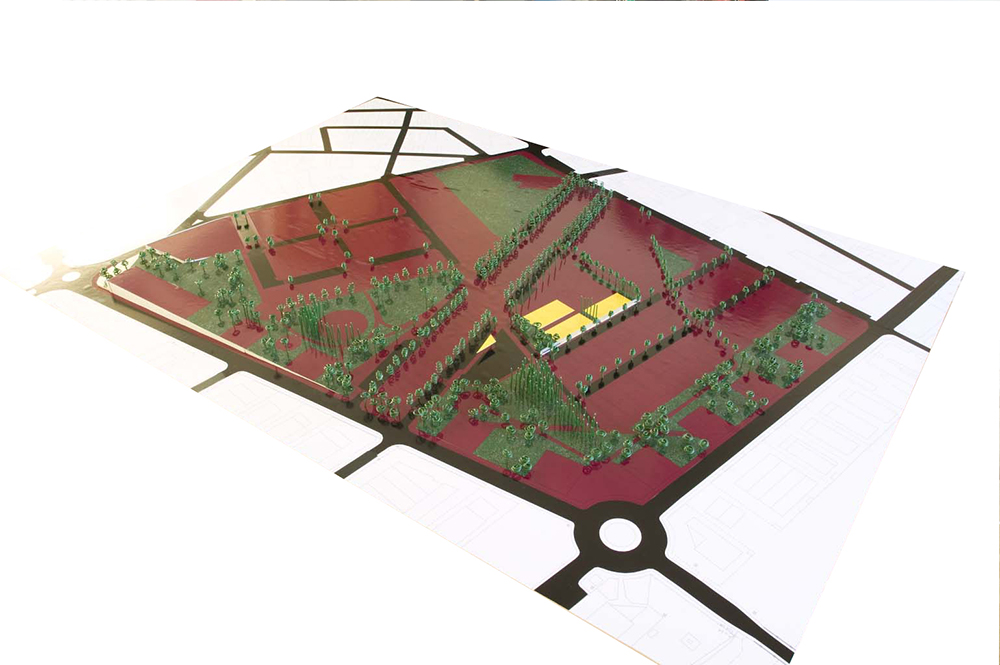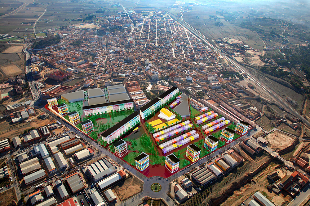 Se propone crear el borde oeste de la población, mediante una zona verde que actuara de separación del área industrial perimetral y de encuentro o entrada desde los viarios que la delimitan, esta zona verde se complementara con edificios aislados que señalizaran el final del área residencial a modo de mojones.